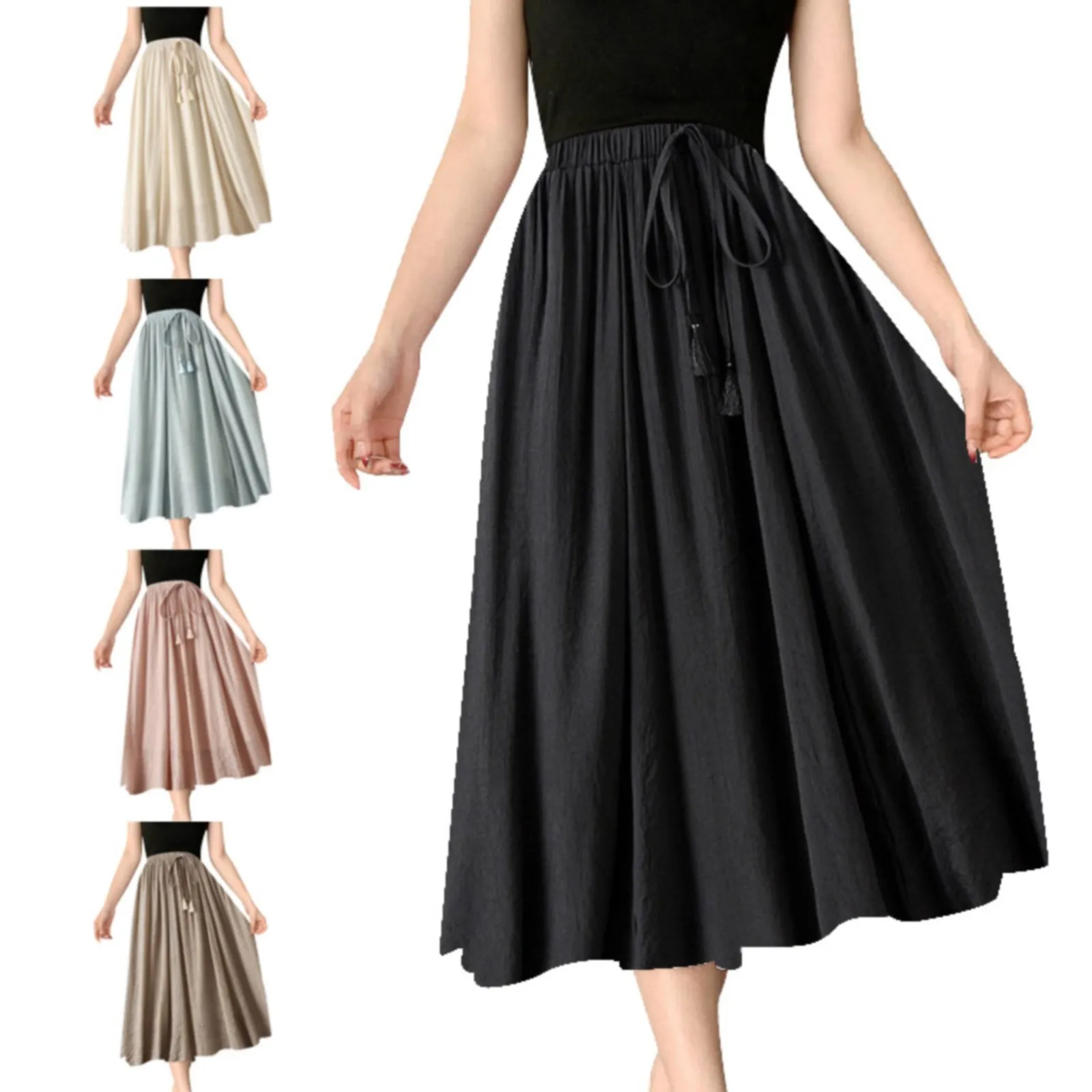 Женская двухслойная плиссированная мини-юбка из хлопка и льна в стиле ретро