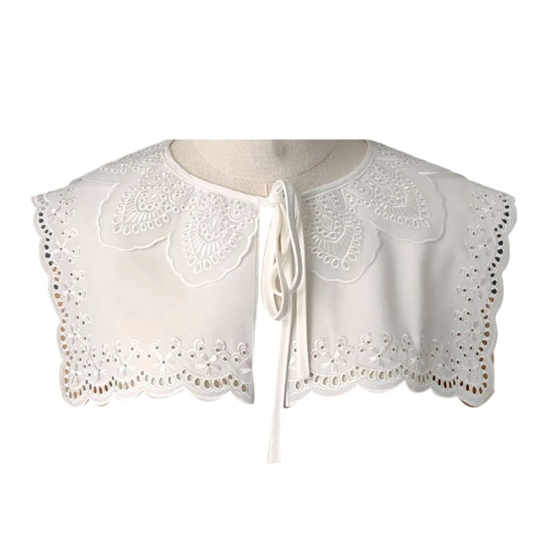 Женская двухслойная прямоугольная шаль C6UD с искусственным воротником и цветочной вышивкой