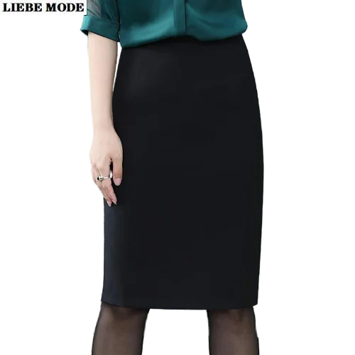Женская деловая юбка-карандаш до колен, облегающая длинная юбка с высокой талией и разрезопосылка, Облегающая Юбка-миди для офиса