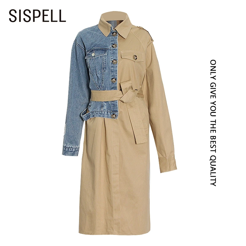 Женская джинсовая ветровка SISPELL, повседневная куртка с отложным воротником и длинным рукавом, Лоскутная куртка на шнуровке с бантом, популя...