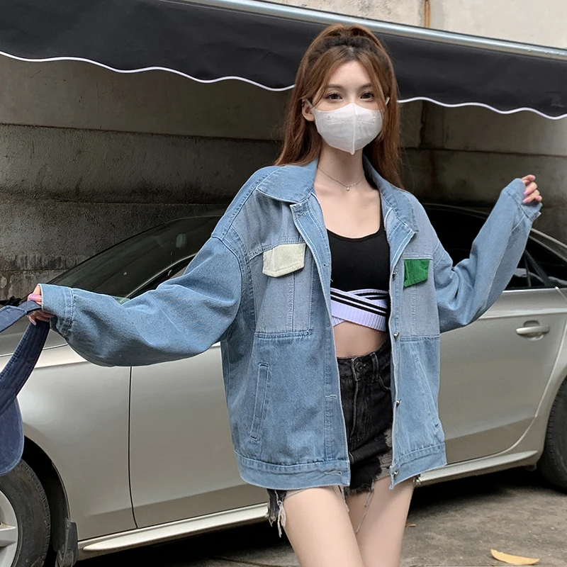 Женская джинсовая куртка в стиле ретро, демисезонная куртка контрастной расцветки, 2022