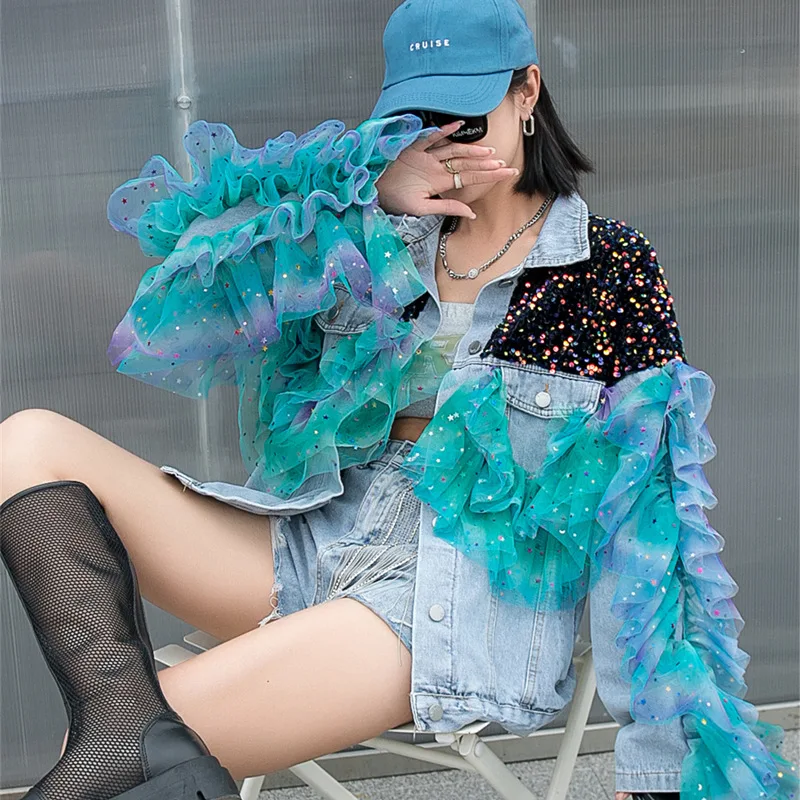 Женская джинсовая куртка в стиле «Heavy Industries», свободная джинсовая куртка с кружевными вставками и блестками в стиле панк, Y1399, весна-лето