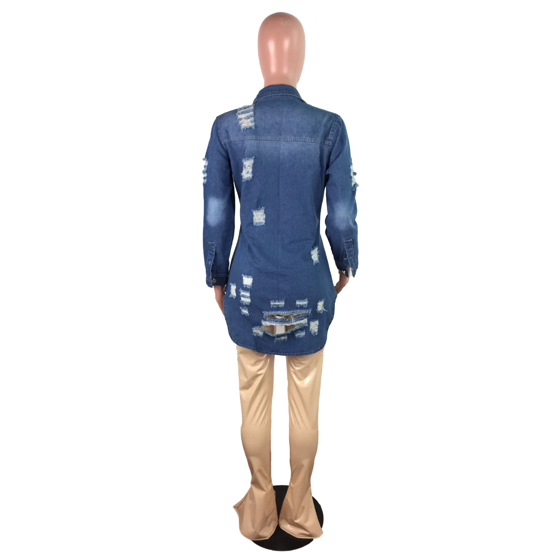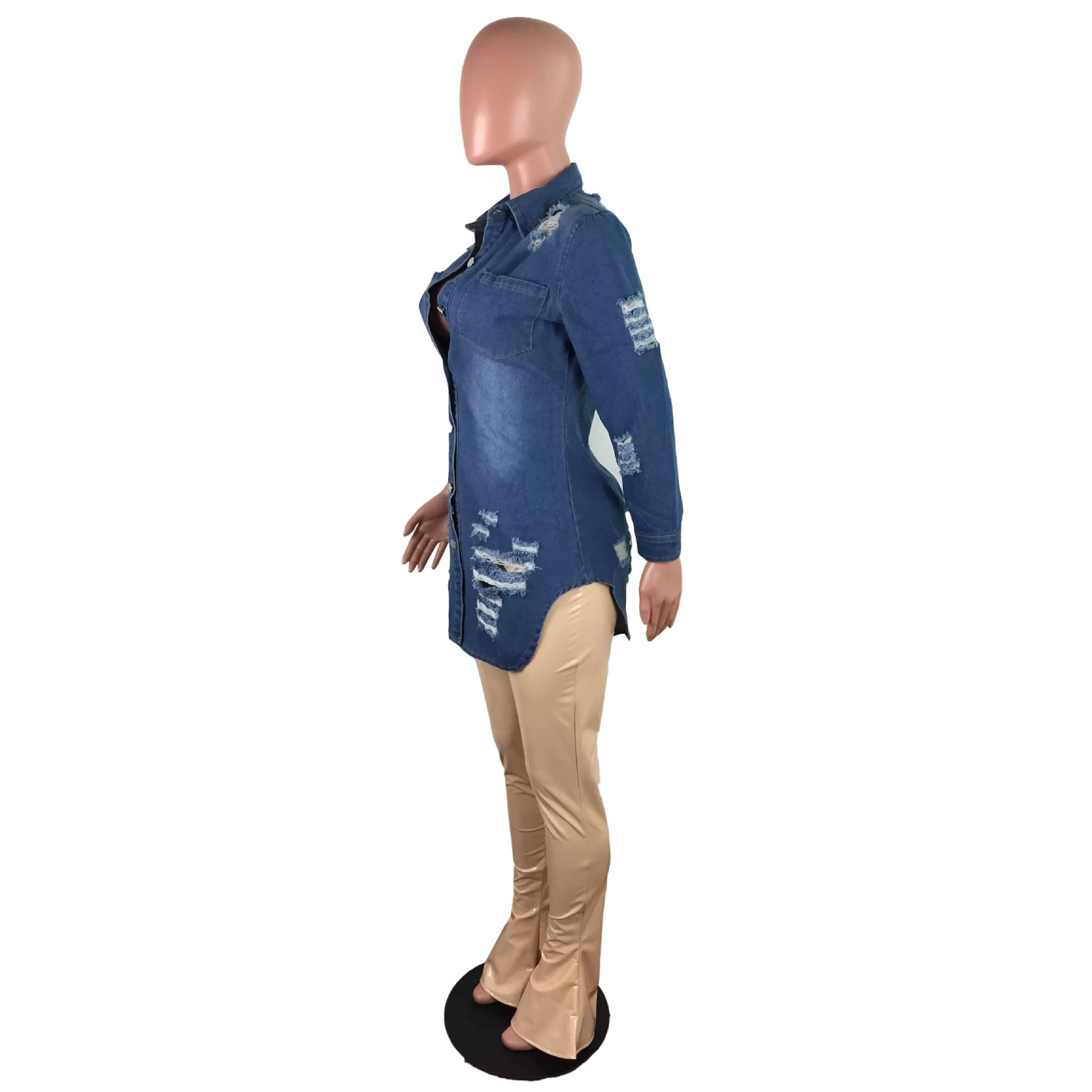 Женская джинсовая куртка на пуговицах, с карманами и отложным воротником