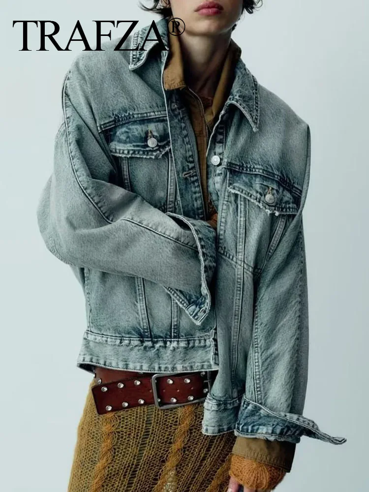 Женская джинсовая куртка с отложным воротником, длинным рукавом и карманами
