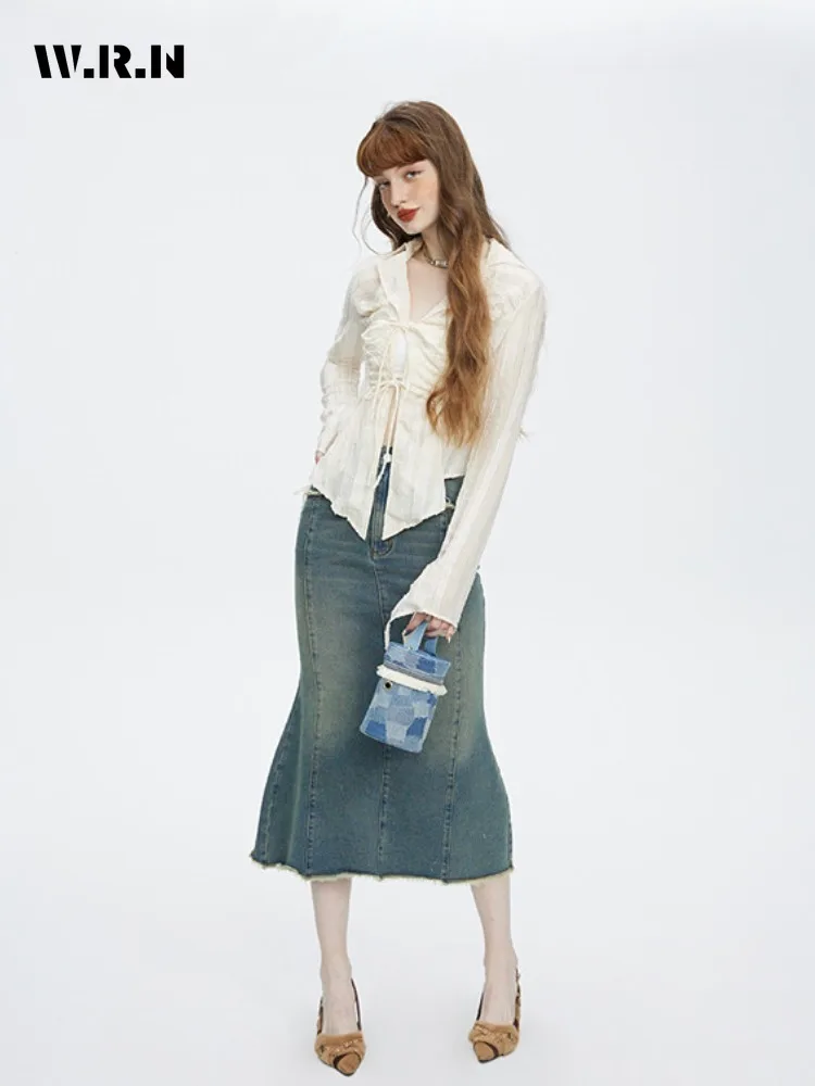 Женская джинсовая юбка с завышенной талией, голубая Повседневная трапециевидная юбка-годе в стиле Харадзюку, модель Y2K на лето, 2024