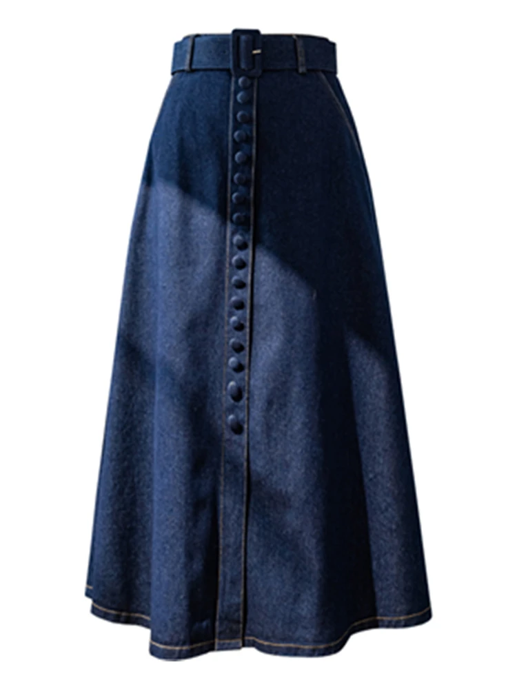 Женская джинсовая юбка с поясом, однобортная трапециевидная юбка с высокой талией, лето 2023