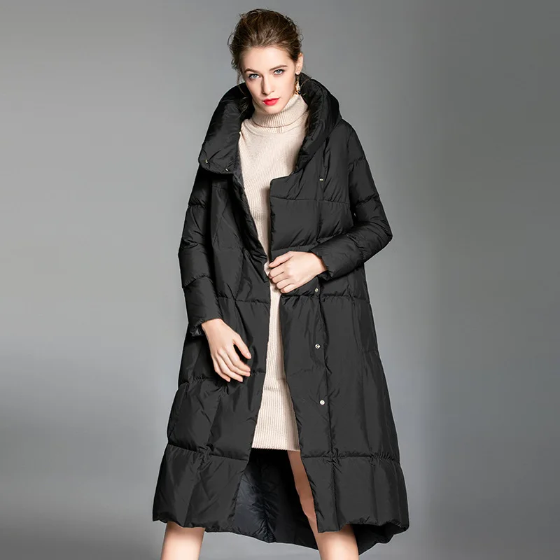 Женская длинная куртка на белом утином пуху, теплая парка, верхняя одежда, зима 2020