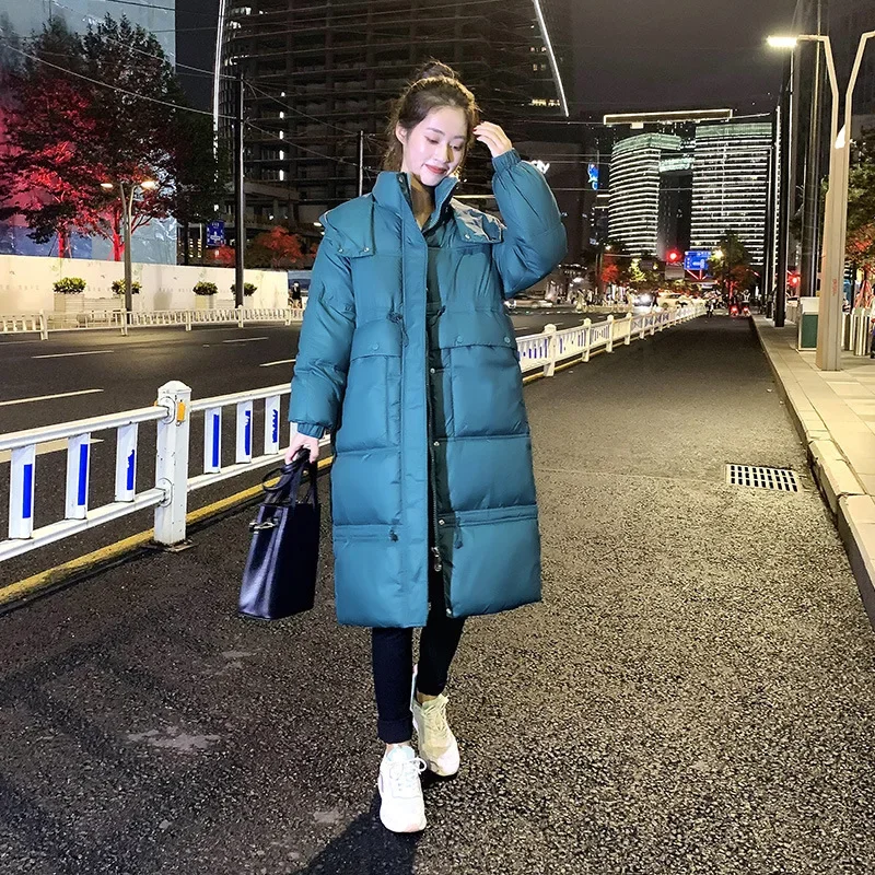 Женская длинная куртка с капюшоном H, Повседневная однотонная свободная теплая парка на осень и зиму