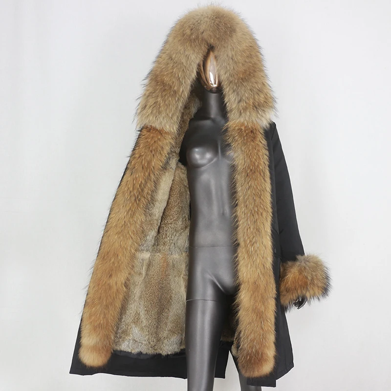 Женская длинная парка со съемной подкладкой, черная непромокаемая парка со съемной подкладкой из натурального меха енота и лисы на капюшон...