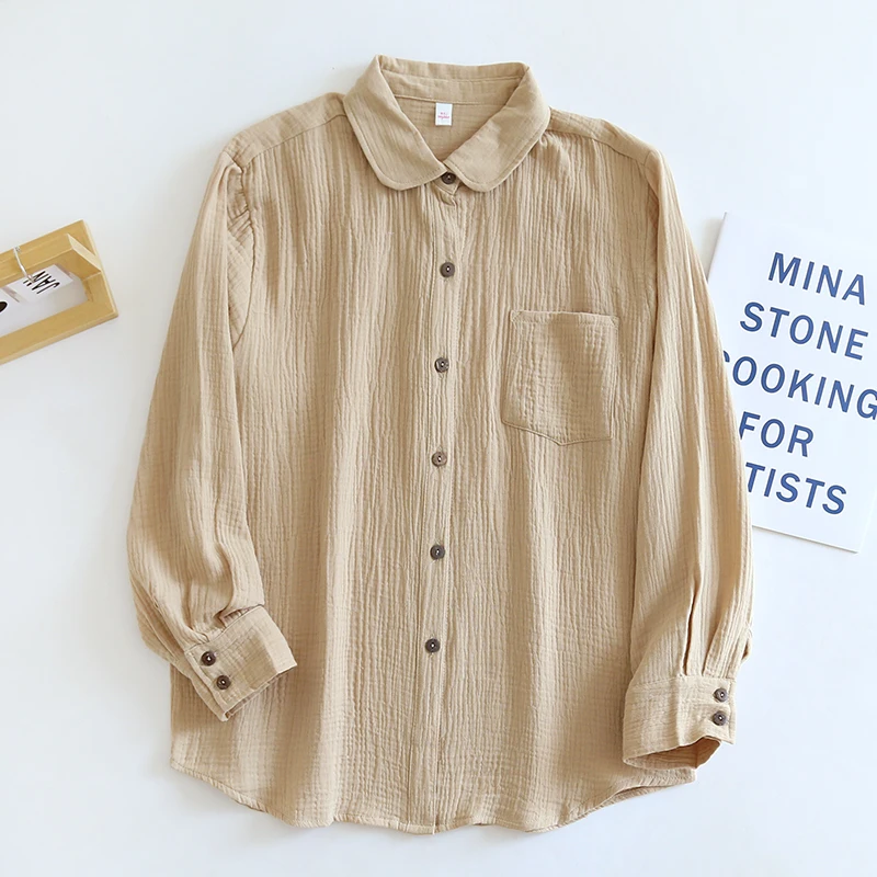 Женская длинная рубашка на пуговицах, универсальная Повседневная блузка из 100% хлопка, весна-осень