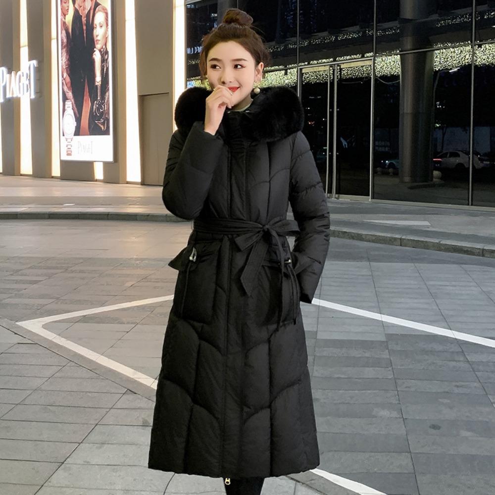 Женская длинная хлопковая одежда выше колена однотонного цвета, новая осенне-зимняя корейская версия, приталенная, модная, с большим меховым воротником, хлопковая одежда XXXL чёрный