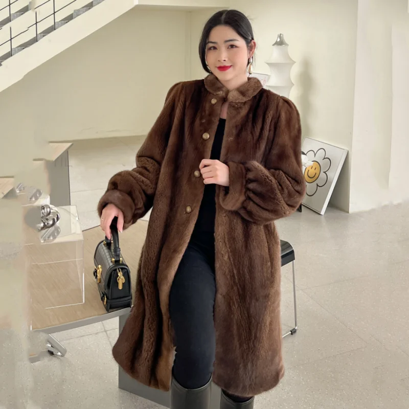 Женская длинная шуба из Копенгагена, теплая шуба из 2023 натурального меха норки, длинная шуба из натурального меха норки, новинка 100%