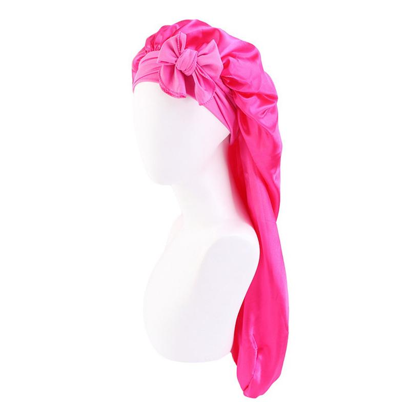 Женская длинная эластичная атласная шапочка для сна с лентой, дышащая шапочка для сна, тюрбан, головной убор для сна, банданы розы красного