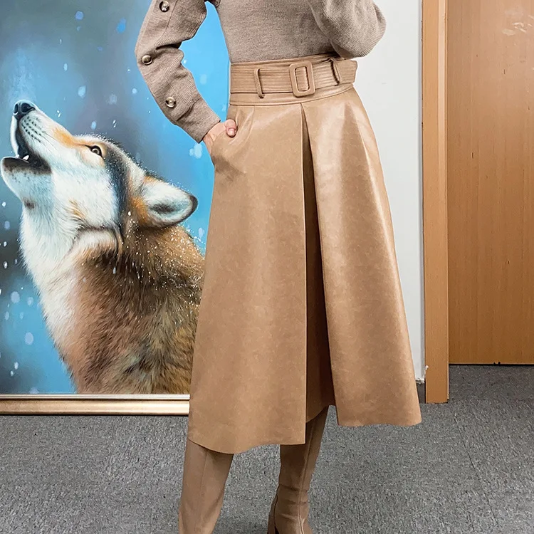 Женская длинная юбка с поясом, Повседневная Длинная юбка из натуральной кожи с высокой талией и узором в виде снежинок, Осень-зима 2023