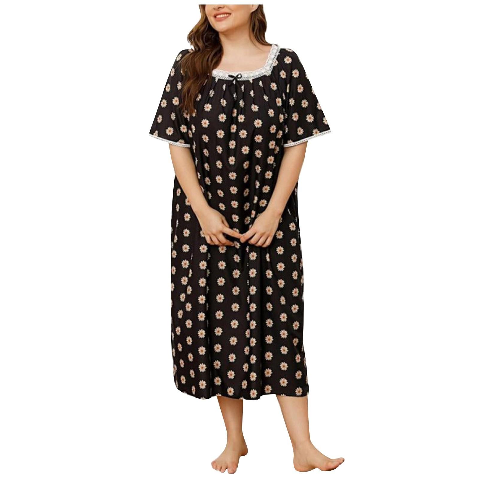 Женская домашняя одежда больших размеров, пижамы, кружевная пижамная юбка с коротким рукавом и принтом тычинок XL чёрный