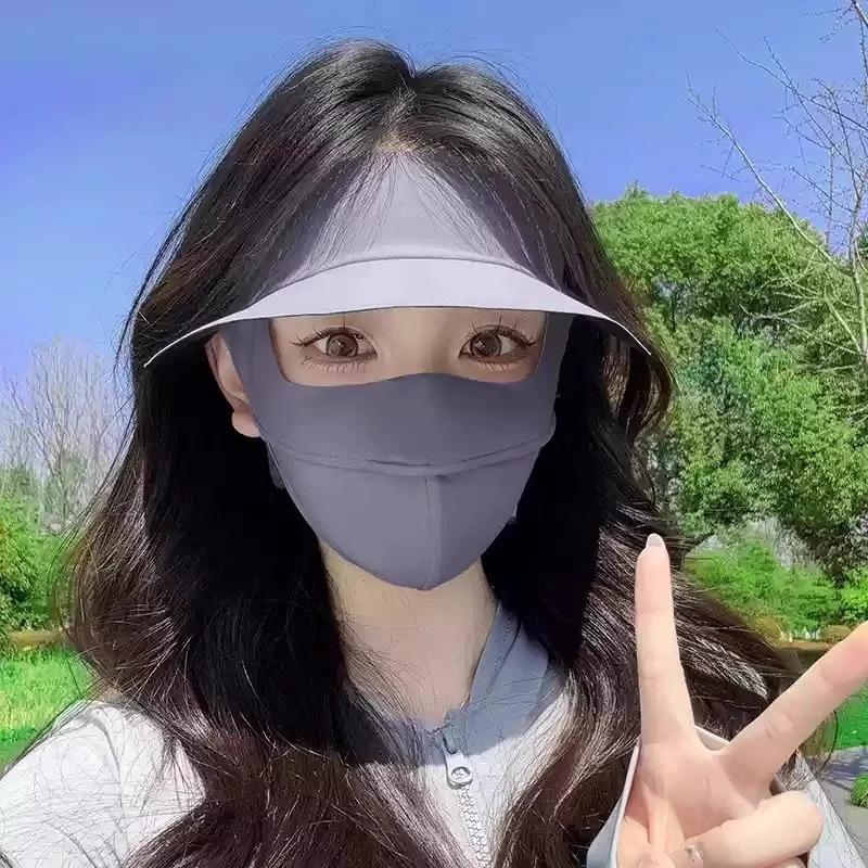 Женская дышащая маска-балаклава из ледяного шелка для защиты от солнца на все лицо со съемным козырьком и защитой от УФ-лучей