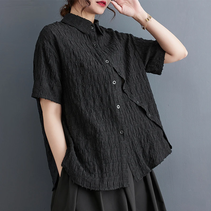 Женская жаккардовая блузка с коротким рукавом, черная Повседневная офисная блузка для работы, лето 2023