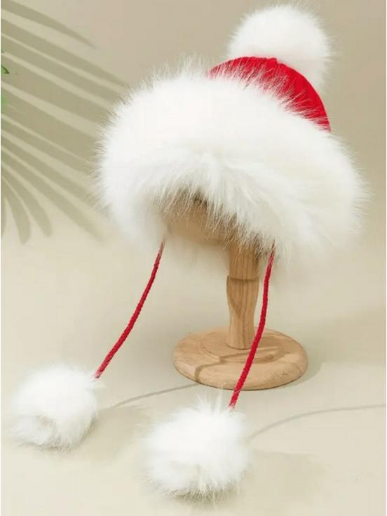 Женская зимняя вязаная шапка с плюшевой подкладкой и меховым помпоном — модная и теплая для Рождества One Size красный
