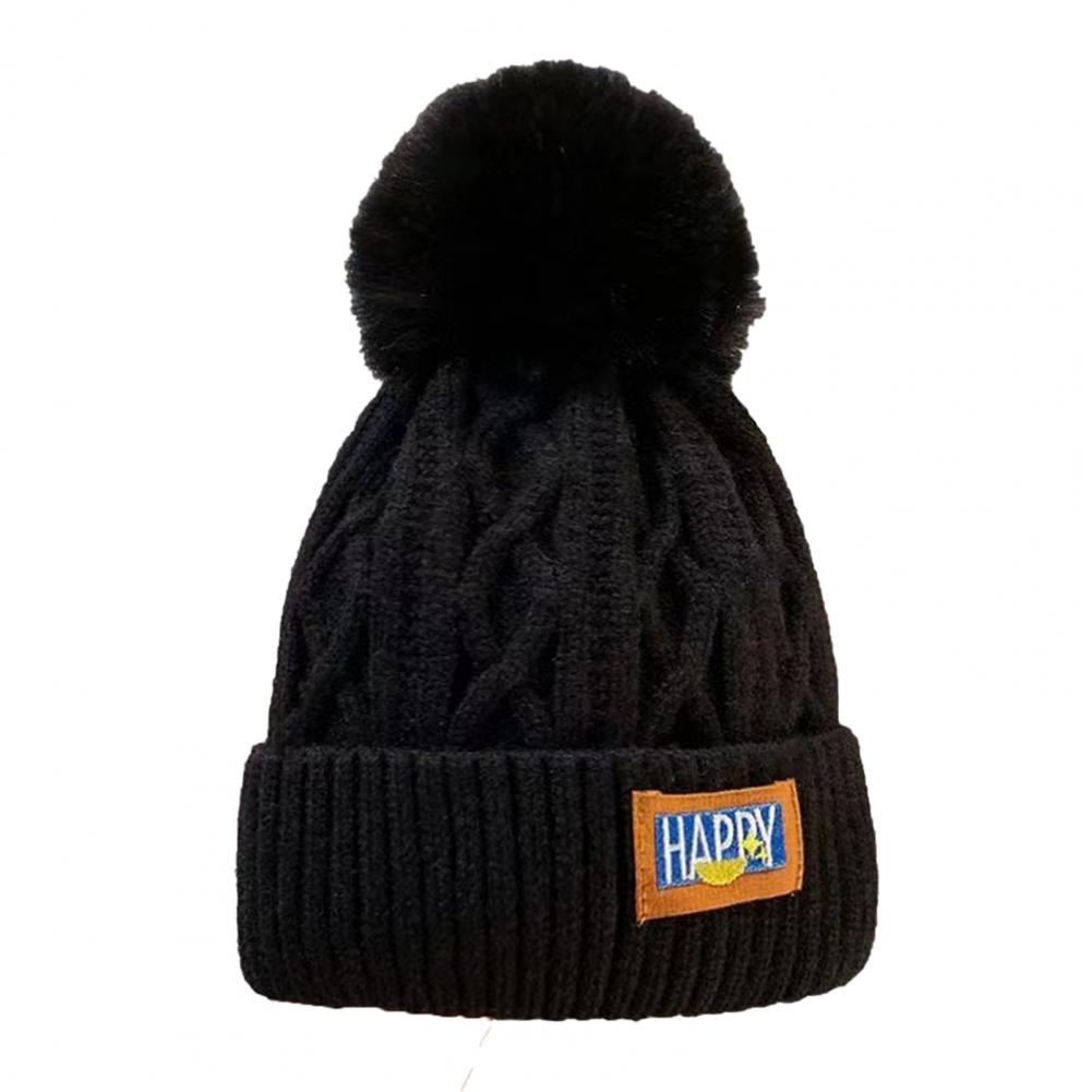 Женская зимняя вязаная шапка с утолщенным плюшевым шариком, теплая, нескользящая, ветрозащитная, однотонная, эластичная, для улицы One Size чёрный