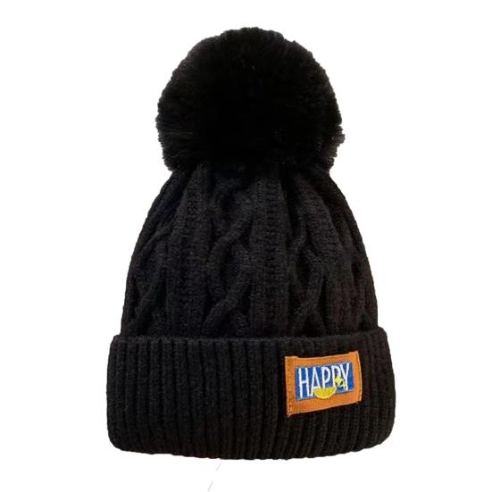 Женская зимняя вязаная шапка утолщенная плюшевая с шариками декор теплая противоскользящая ветрозащитная однотонная чёрный