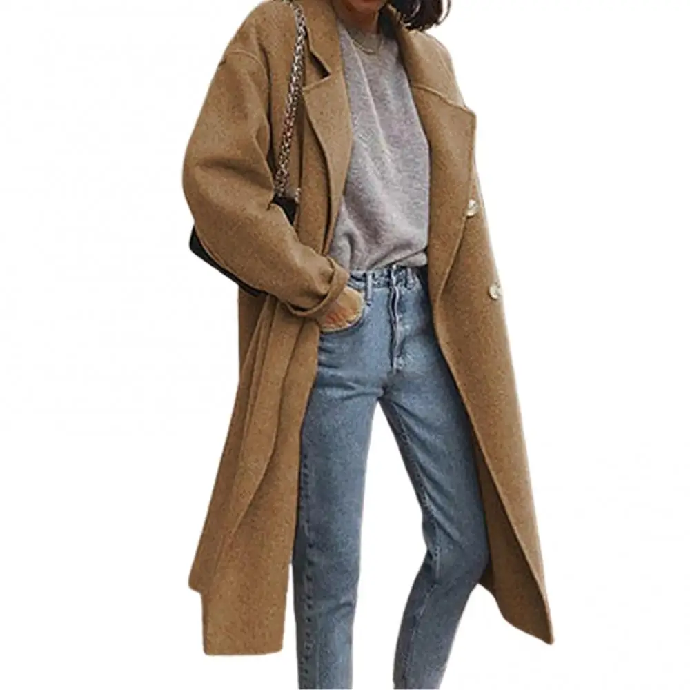 Женская зимняя двубортная куртка с длинным рукавом, пальто средней длины с отворотом