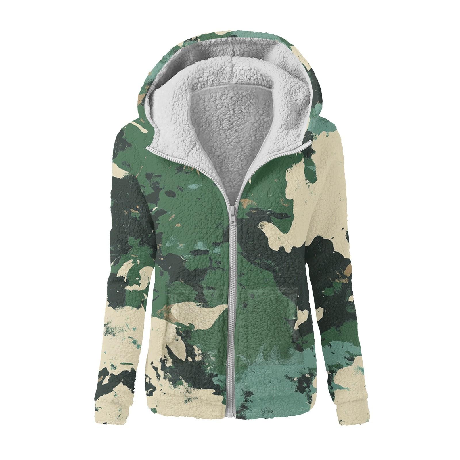 Женская зимняя камуфляжная повседневная модная плюшевая куртка-свитер на молнии с капюшоном L армия зеленый