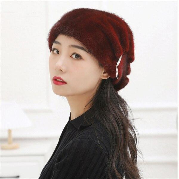 Женская зимняя кожаная меховая шапка из натурального меха норки Женская зимняя кожаная меховая шапка из норки, теплая мягкая пушистая шапка из натурального меха XL 60cm above бордовый