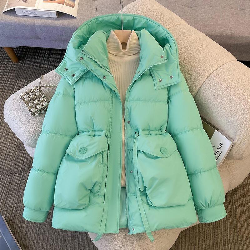 Женская зимняя короткая пуховая куртка, модная куртка с толстой подкладкой по талии, теплая куртка XS зелёный