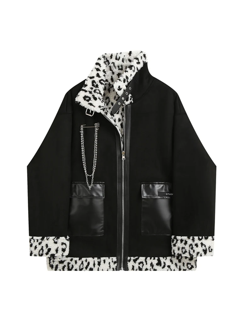 Женская зимняя куртка оверсайз в стиле Харадзюку, пушистая куртка на молнии в стиле пэчворк, пальто из овечьей шерсти в стиле 90-х, в винтажном стиле, Новинка
