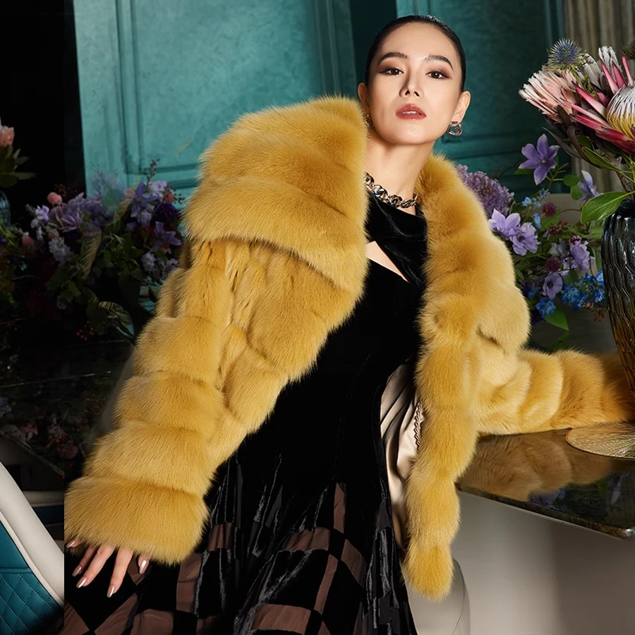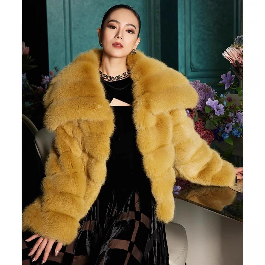 Женская зимняя куртка с большим воротником, лидер продаж 2023, теплая короткая женская шуба из лисьего меха