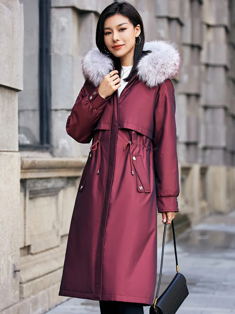 Женская зимняя меховая куртка средней длины со съемным воротником из меха енота и подкладкой из кролика Рекс, женские парки, модная теплая куртка Zm