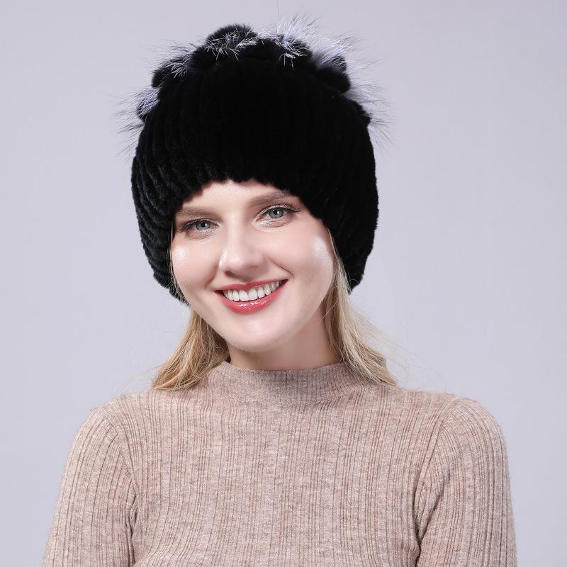 Женская зимняя меховая шапка из выдры, теплая вязаная модная шапка с защитой ушей, меховая шапка из кролика