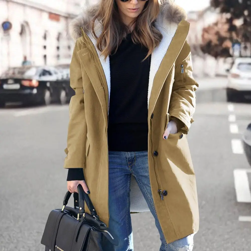 Женская зимняя однотонная теплая куртка на молнии с карманами и застежкой-молнией