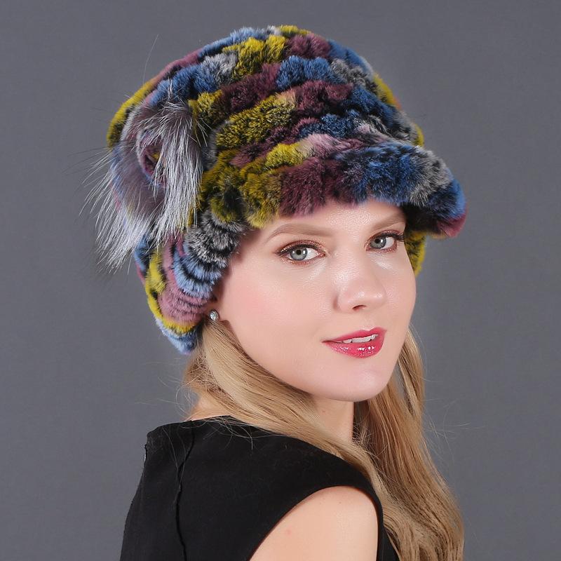 Женская зимняя теплая шапка из шерсти кролика рекс, вязаная меховая шапка с утиным языком One Size