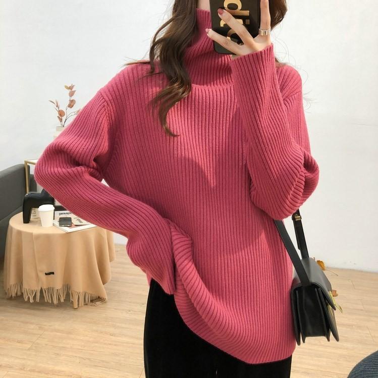 Женская зимняя трикотажная одежда Водолазка Свитер Топы с длинным рукавом Блузки Толстовки Пуловеры для женщин Уличная одежда Корейская модная одежда OneSize розы красного
