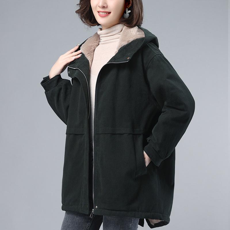 Женская зимняя хлопковая парка большого размера - Флисовая подкладка, Утепленное пальто для среднего возраста L (120-135 Jin) темно-зеленого
