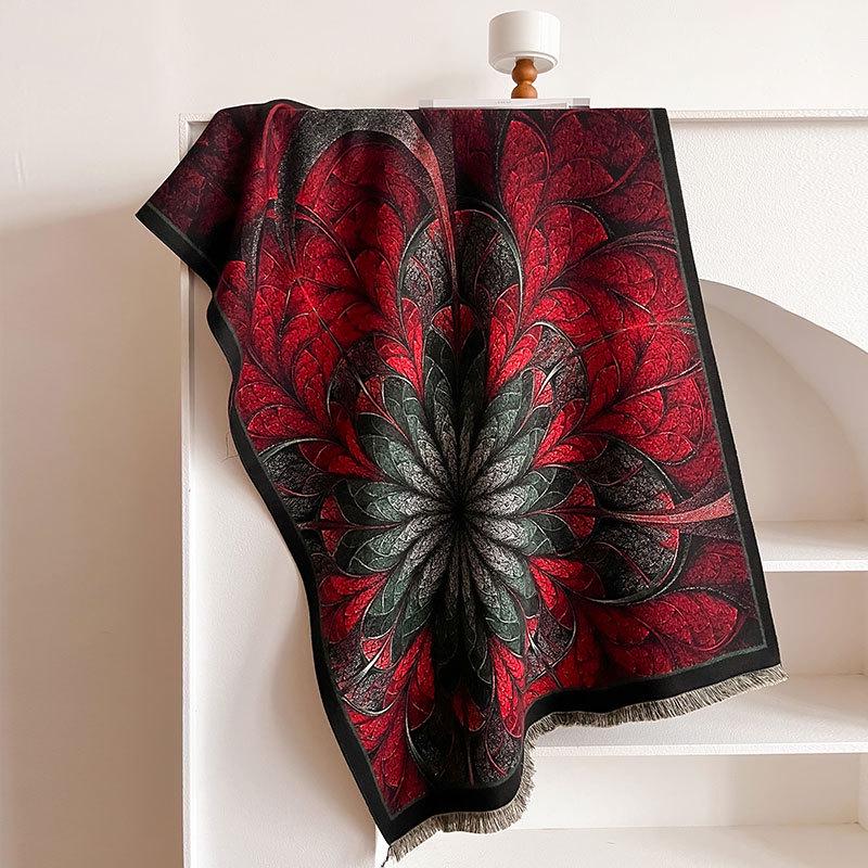 Женская зимняя цветочная ретро-имитация кашемировой шаль - модный и теплый подарочный шарф 180x65 cm