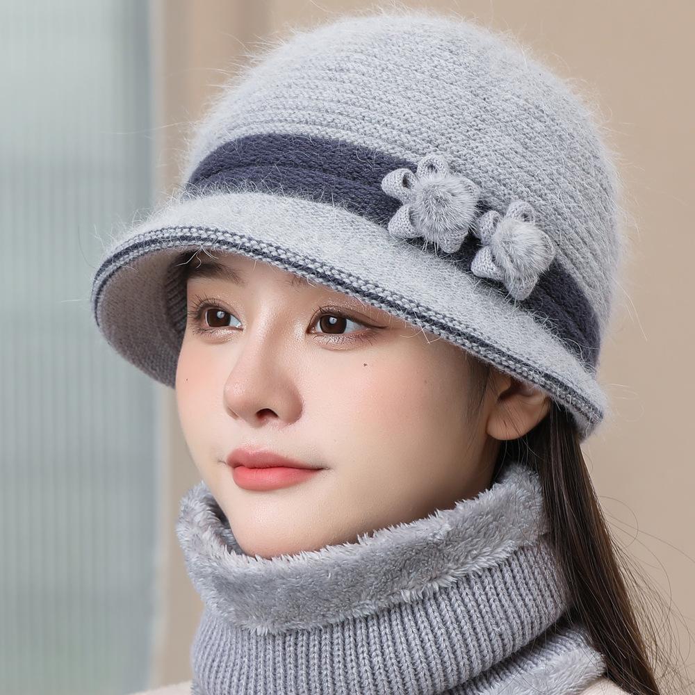 Женская зимняя шапка - Ветрозащитная и теплая шапка с цветочным декором, Мягкая и теплая женская шапка, Подходит для холодной погоды и особых случаев Single Cap серый