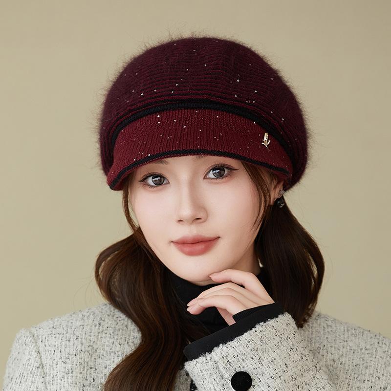 Женская зимняя шапка с плюшевой меховой подкладкой, сохраняющая тепло, модная вязаная шапка из меха кролика для женщин, уличное утепленное зимнее пальто One size бордовый