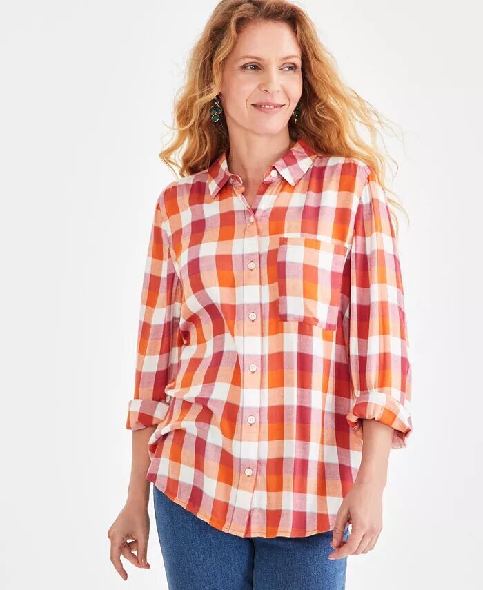 Женская идеальная рубашка в клетку на пуговицах Style & Co, оранжевый