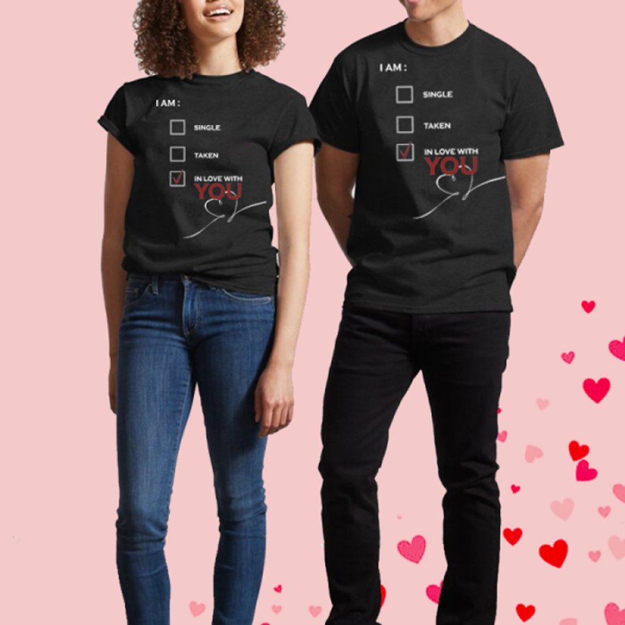 women tops,женская классическая футболка «я влюблен в тебя» ко дню святого валентина