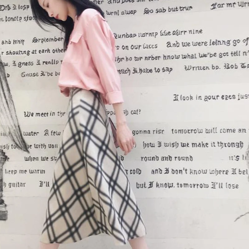 Женская клетчатая юбка до середины икры, Элегантная стильная модная Универсальная Женская юбка средней длины, популярная весенне-осенняя Ж...