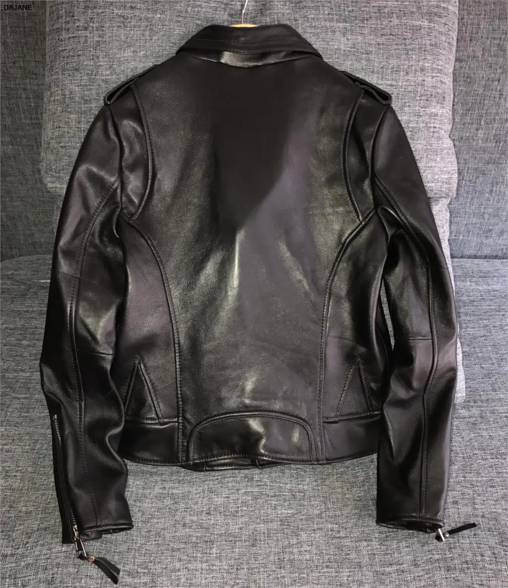 Женская кожаная куртка на молнии, роскошная куртка из натуральной овечьей кожи с отворотом