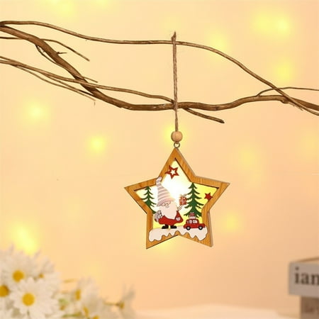 Home Decor 2PC Christmas Wooden Luminous Decorated Tree Pendant Room Decor Wall Bedroom Bathroom Kitchen Living Room