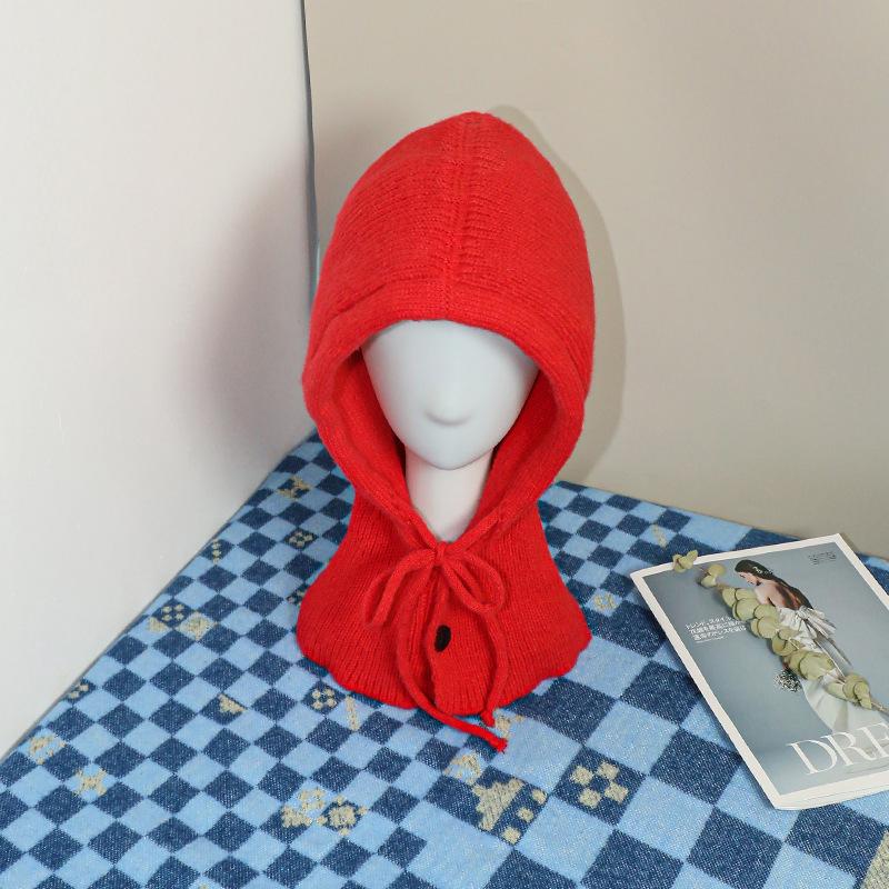 Женская корейская шапка-балаклава, зимняя теплая шапка-шарф, интегрированная парная защита ушей, вязаная шапка из пряжи one size