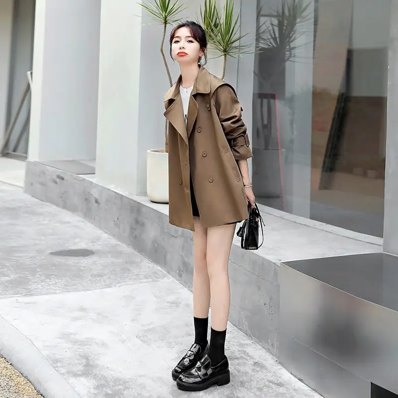 Женская короткая ветровка кофейного цвета, свободная модная дизайнерская верхняя одежда в Корейском стиле для весны и осени, Z1537, 2023