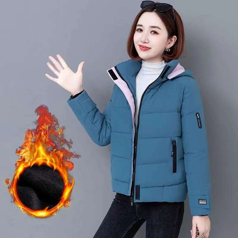 Женская короткая зимняя куртка из хлопка в корейском стиле с капюшоном и бархатом L синий