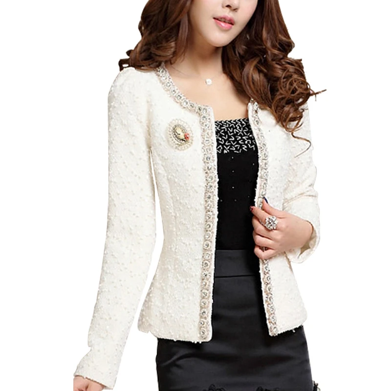 Женская короткая куртка с длинным рукавом, короткая элегантная приталенная куртка с бусинами и бриллиантами, E11H, весна-осень 2023