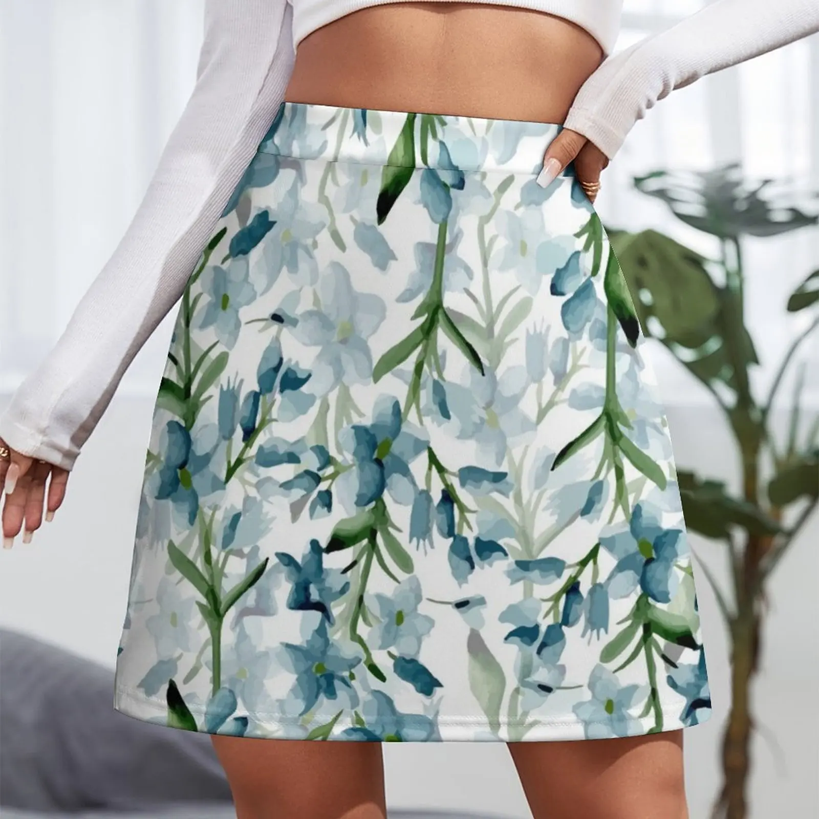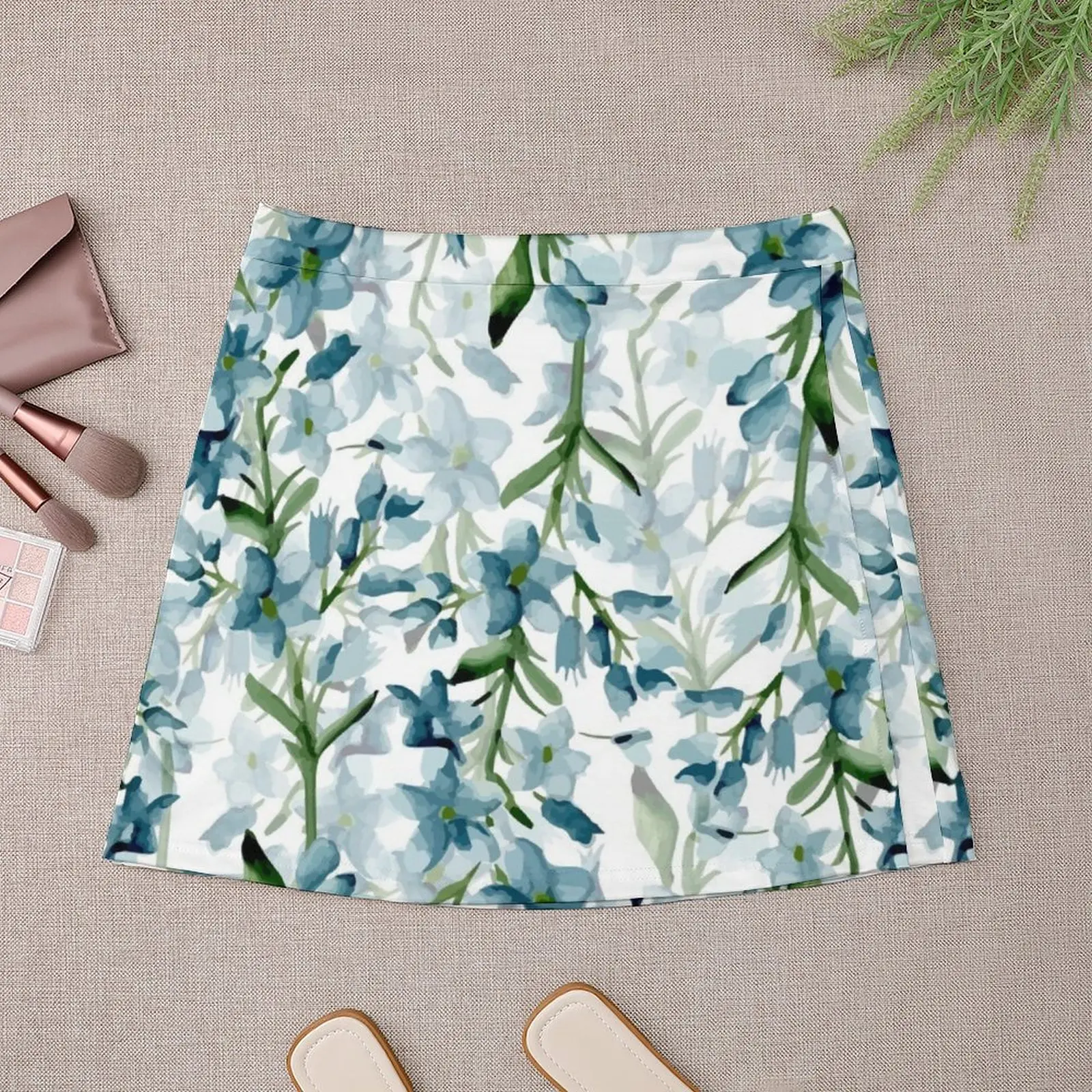 Женская короткая мини-юбка с голубыми стеблями, роскошная женская юбка, Корейская одежда, женское летнее платье