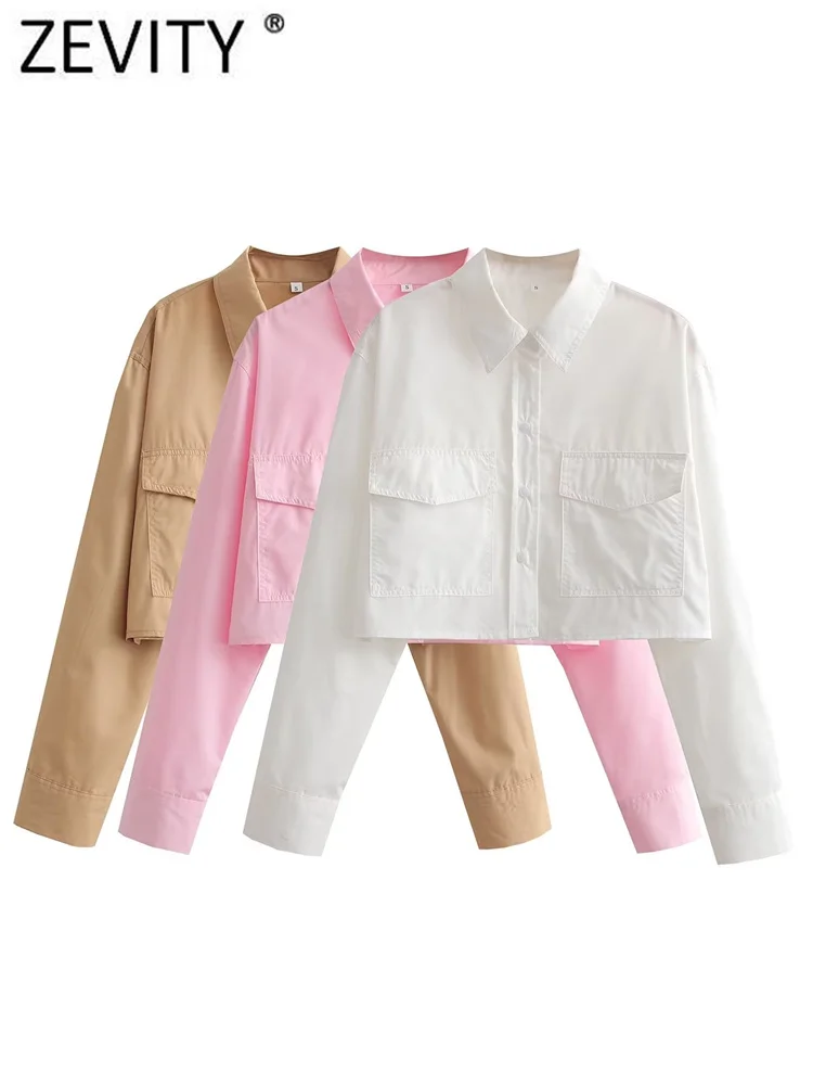Женская короткая однотонная блузка Zevity в стиле сафари, Женская шикарная рубашка, блузки, Короткие топы LS3815